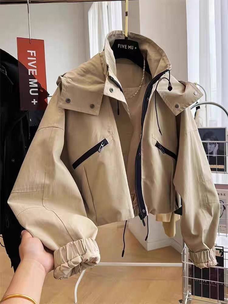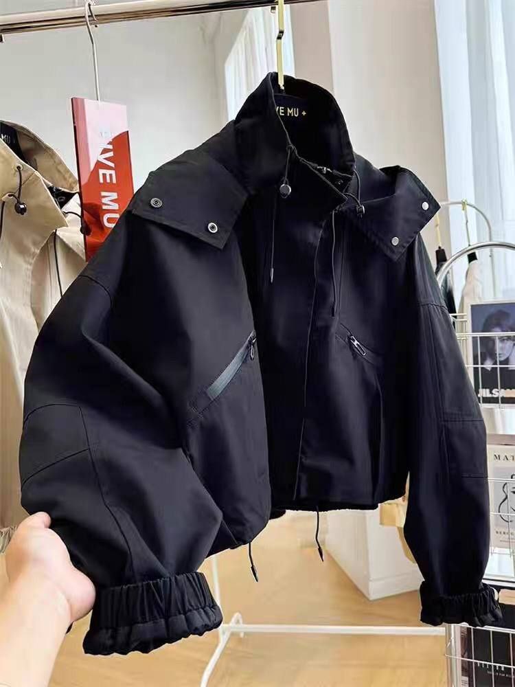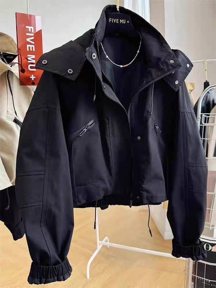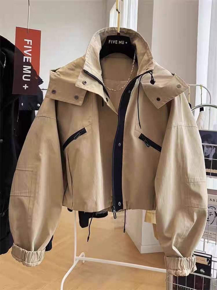 کاپشن/بارانی کوتاه آستردار با طراحی آزاد و فری‌سایز، گزینه‌ای شیک و کاربردی برای روزهای خنک است.